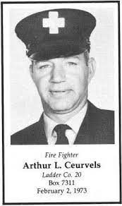 Firefighter Arthur L. Ceurvel of Ladder 20 died from injuries he received when the ladder truck “jack-knifed” during a severe ice storm, on the icy roadway of the Southampton Street Bridge. He had 26 years of service. Arthur was very involved in Local 718 and was President of the Profession Firefighters of Massachusetts.
