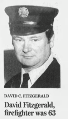 David C. Fitzgerald‚ 63‚ a 31-year career firefighter with the Somerville Fire Department‚ died of a heart attack on October 13‚ 2000‚ after responding to emergency calls. He served in the military during the Cuban missile crisis. Somerville Fire Department awarded him its Medal of Honor posthumously.