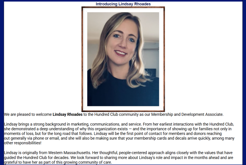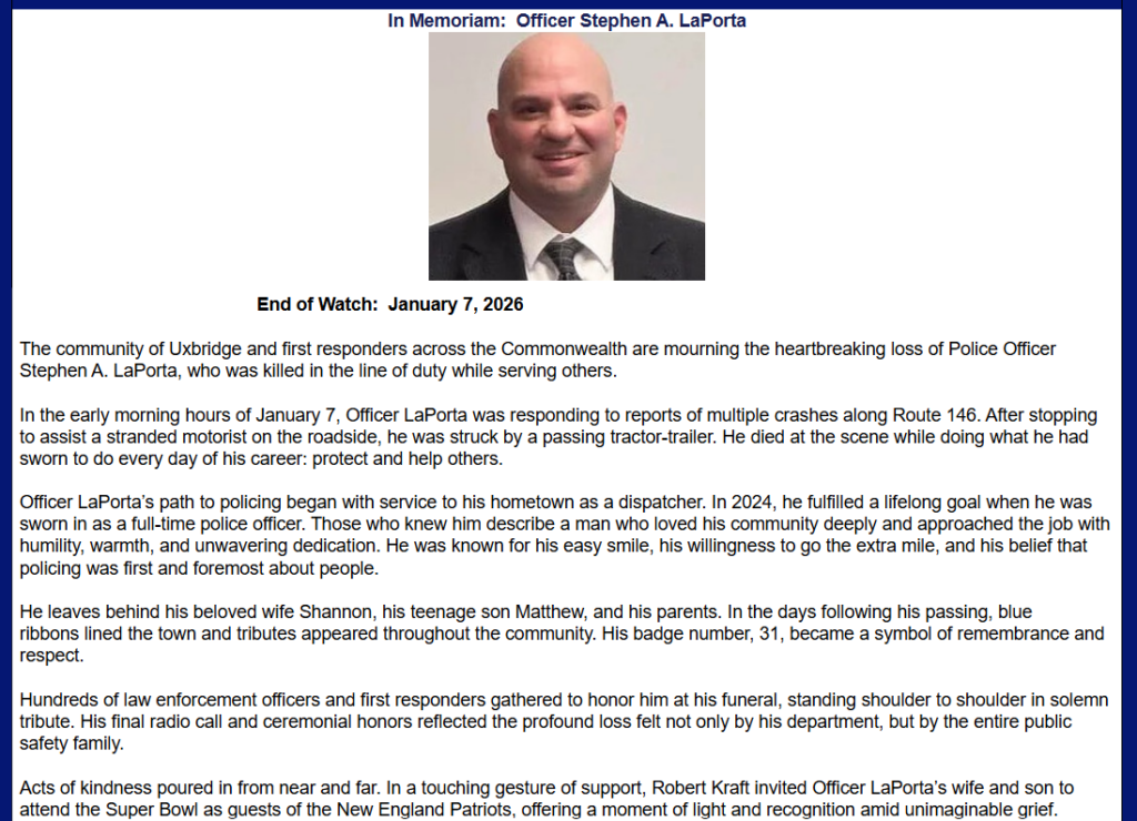 Inspired by his courage and sacrifice, Amy is passionate about supporting the families of fallen first responders. She is a strong advocate for the 100 Club of Massachusetts. Through this work, Amy honors her husband’s legacy while helping ensure that no family faces their darkest days alone.